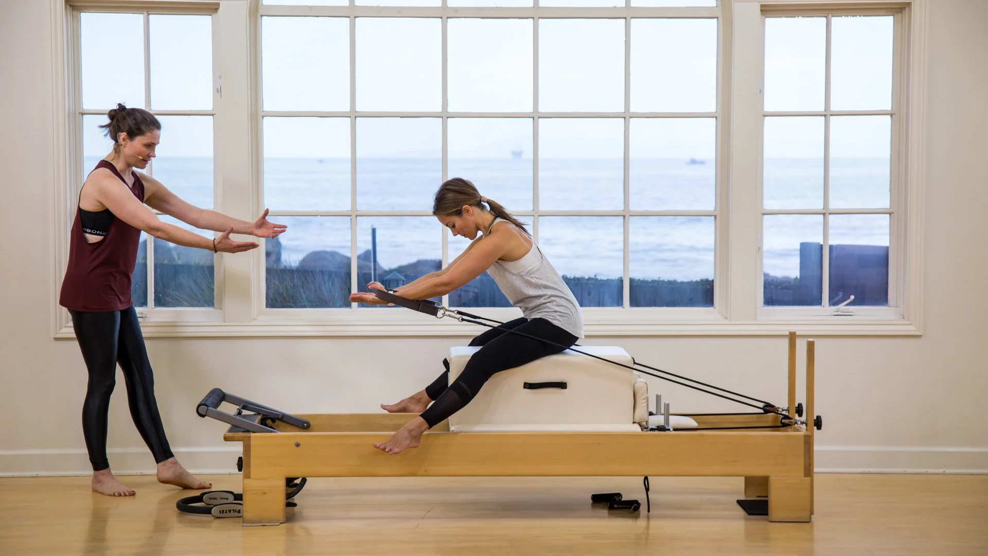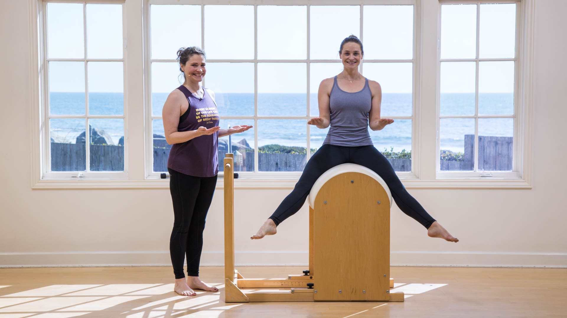 Despite the differences in apparatus, the key themes remain consistent: lift, balance, control, and an even connection through your seat bones and leg at the same time as maintaining your spinal and upper body stability.