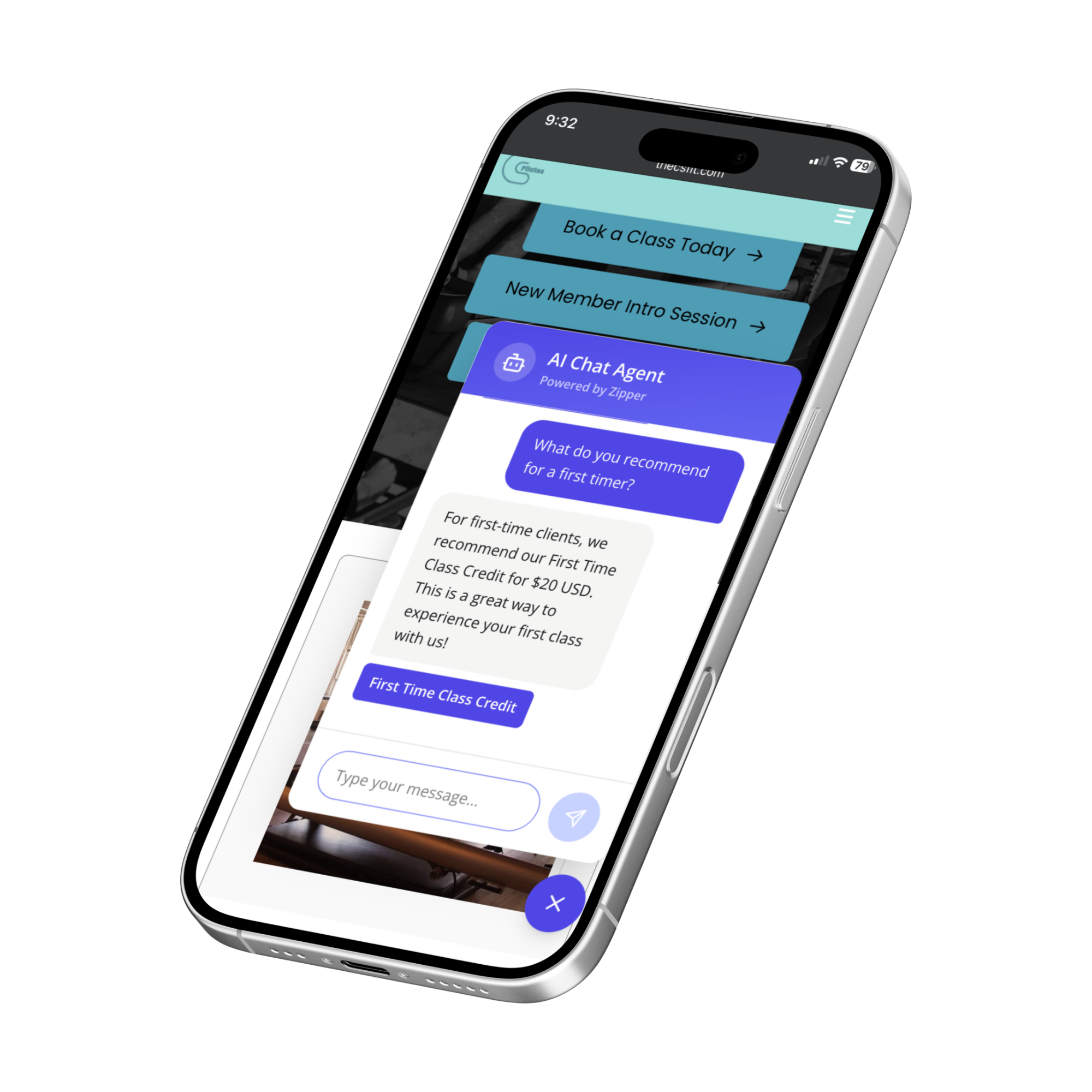 An AI-powered support agent on your website can act as a 24/7 front desk assistant. It doesn’t just pop up and say “How can I help?” It’s trained on your studio’s offerings, pricing structure, intro packages, policies, and schedule.